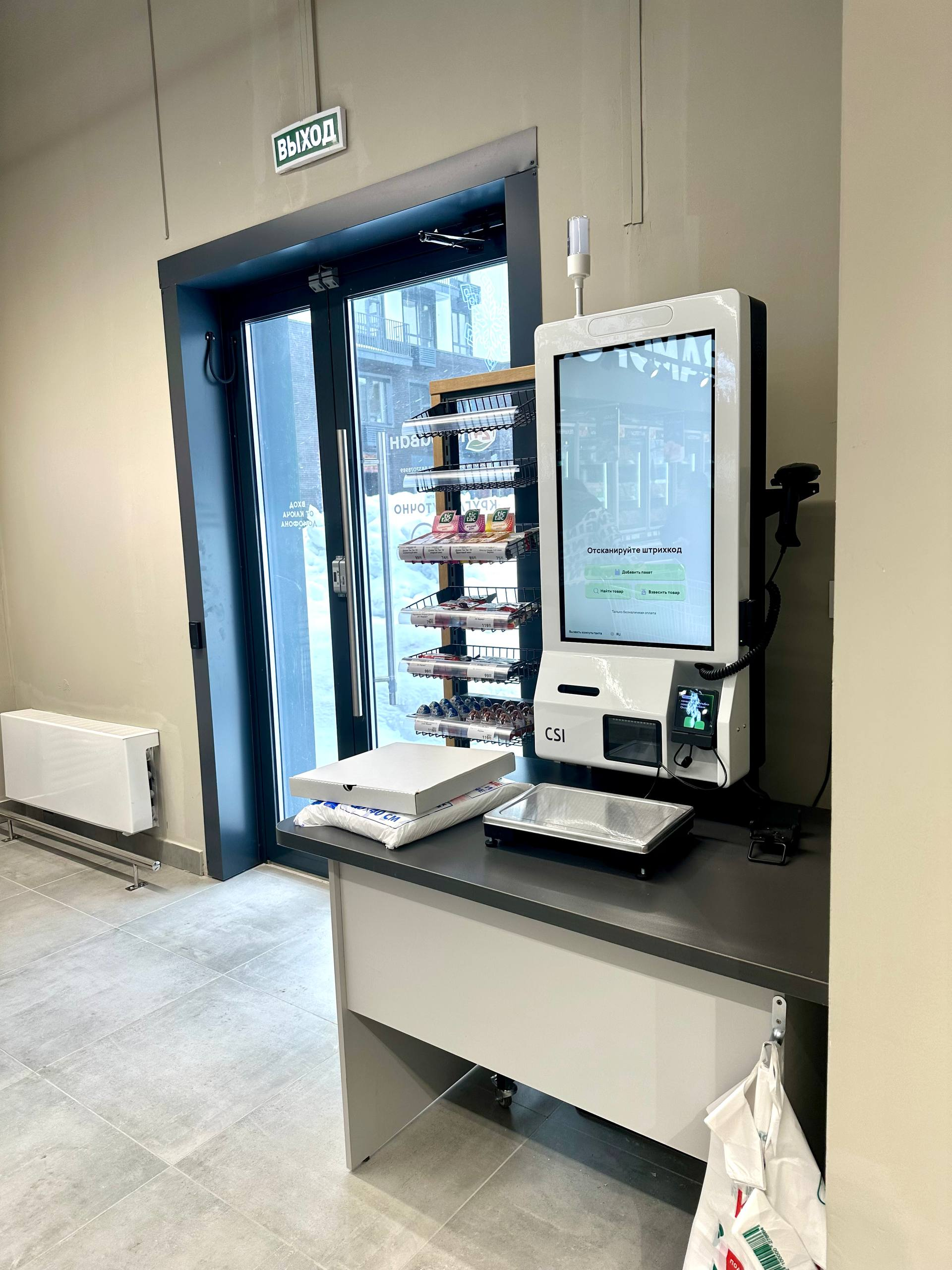 ✔️ большая зона с кассами самообслуживания.