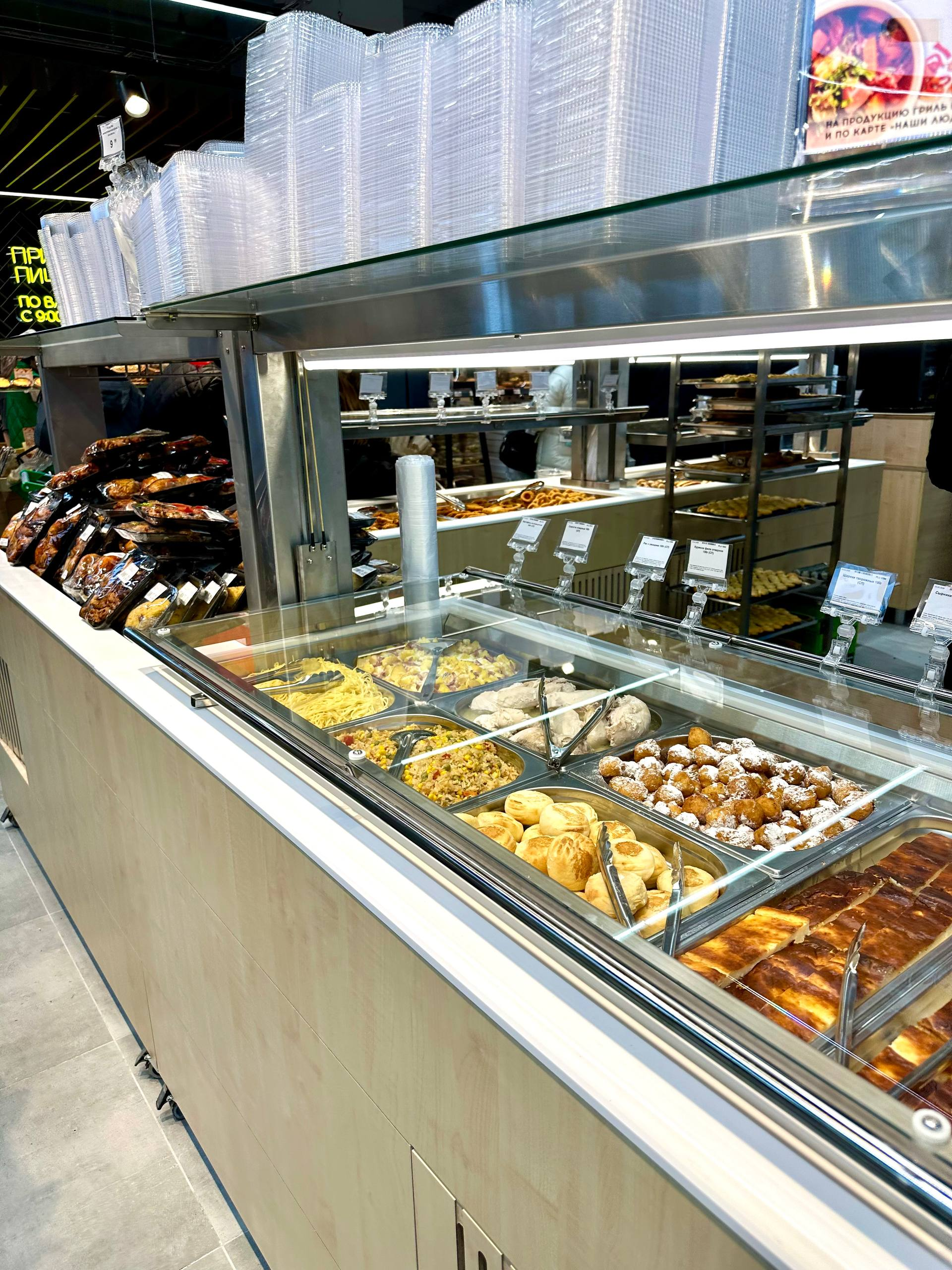 ✔️ на мой взгляд, не менее трети площади, а то и больше, отдано под готовые блюда;