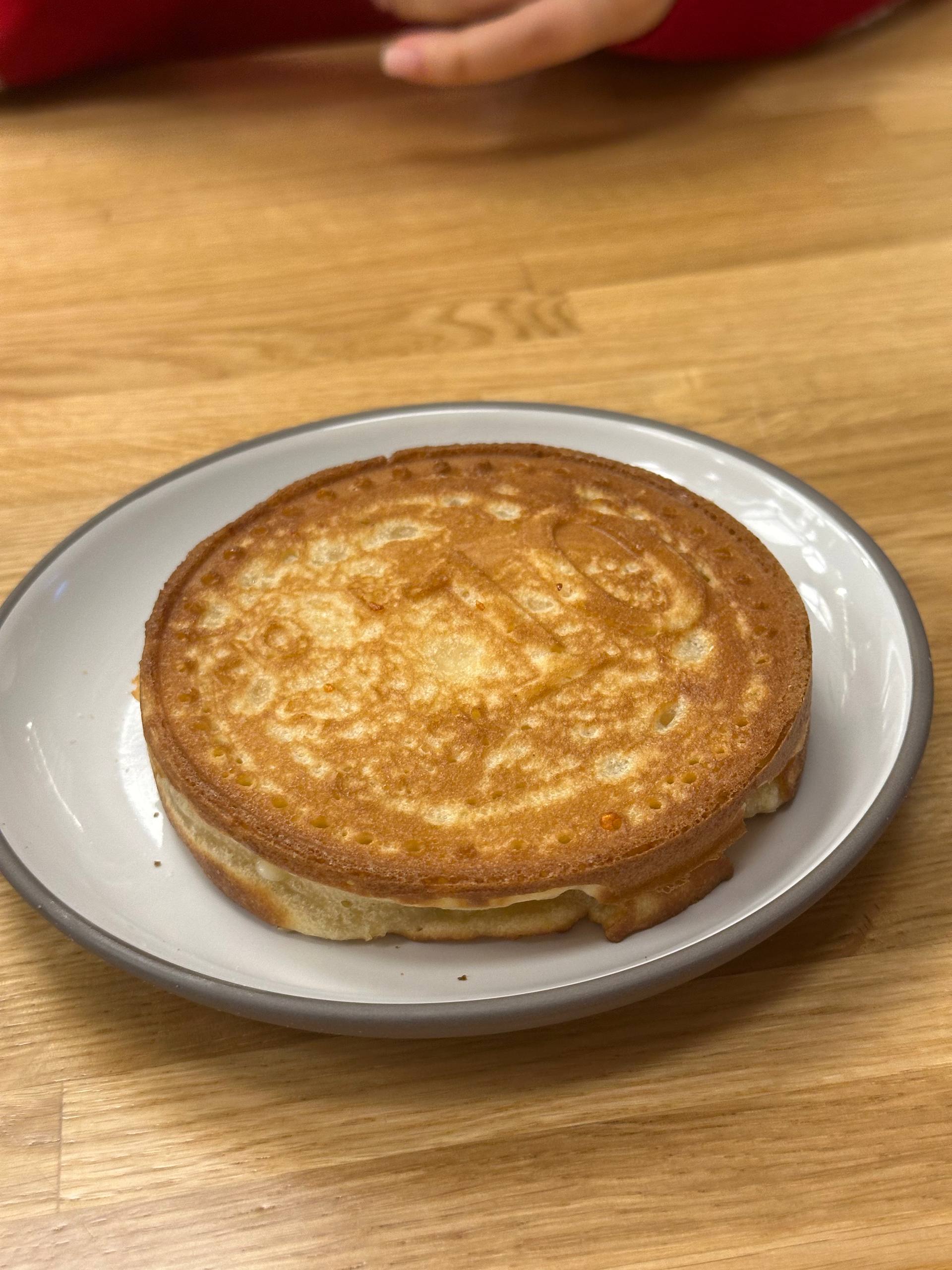 Представляя сырный корн-дог и монетку, су-шеф предложила предположить, насколько тянущийся сыр внутри. Половинки корн-дога удалось разнести на метр, а вот для монетки не хватило отведённого пространства. Очень тягучие.
