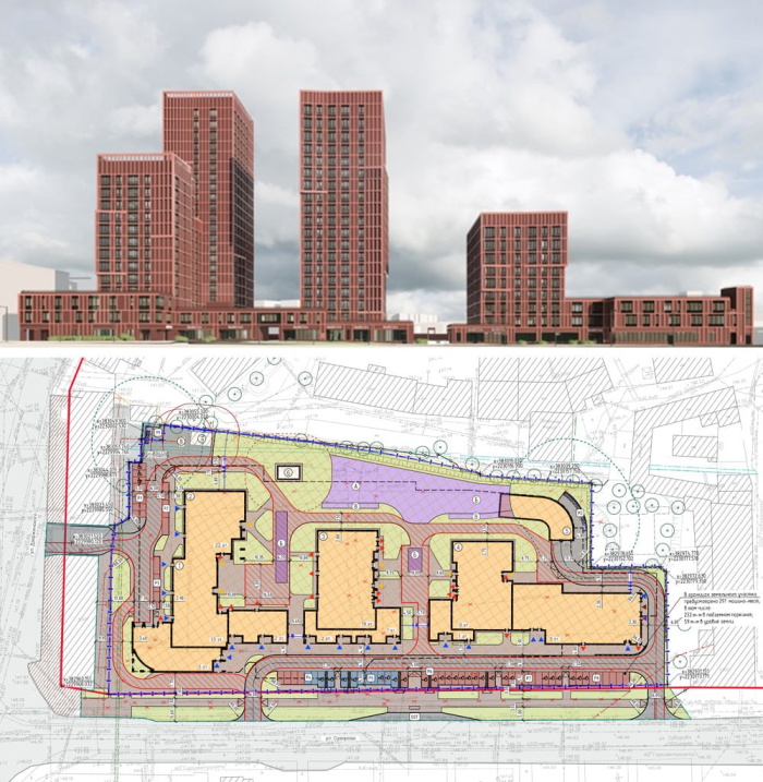 Так же в проектных документах можно посмотреть на будущий ЖК сверху, используя схему планировочной организации участка.