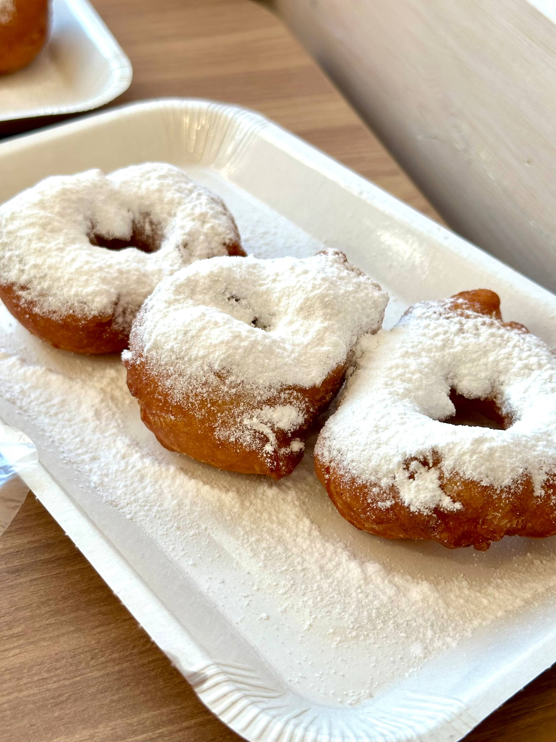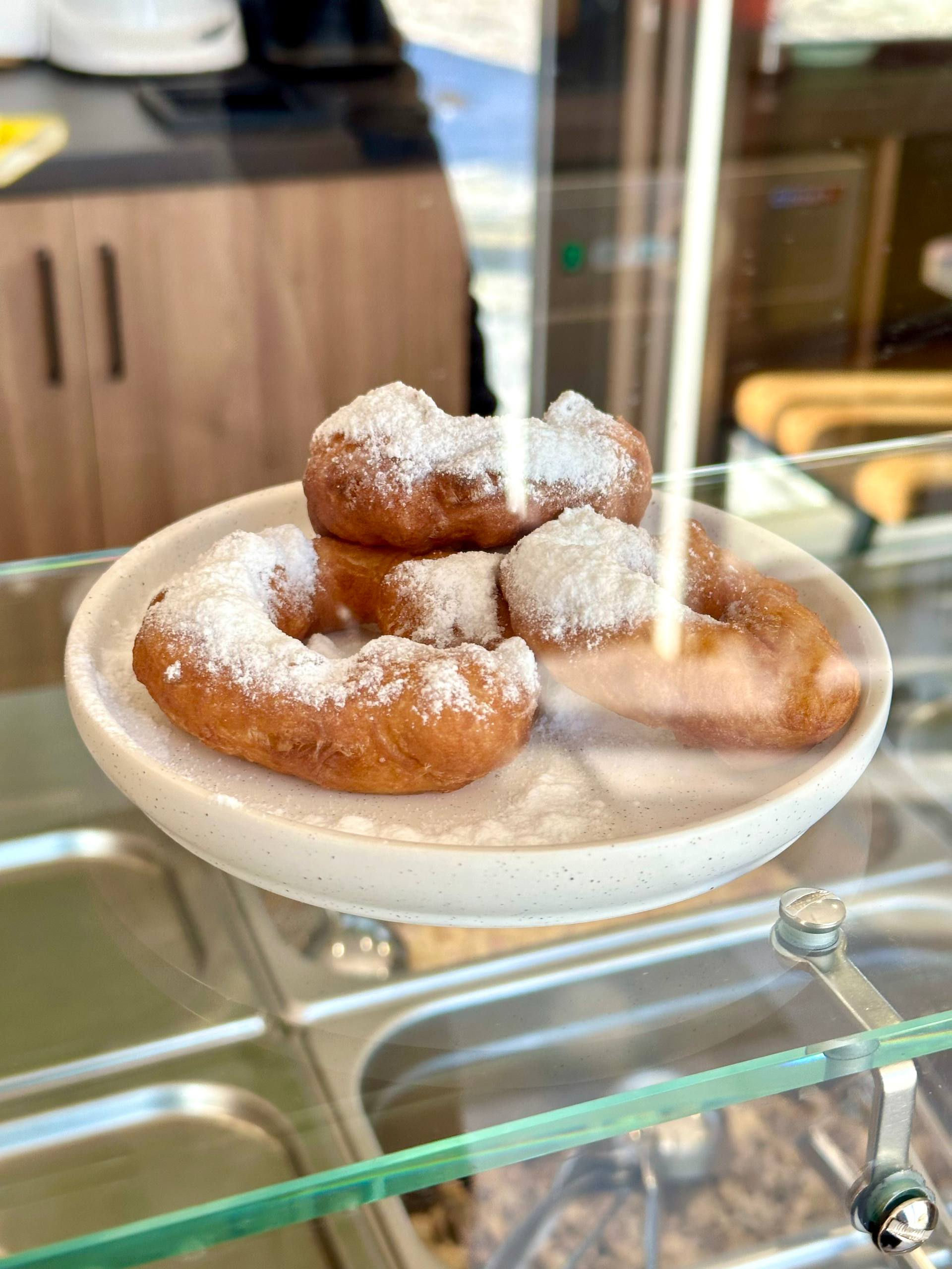 Пышки тоже не подвели. Вкусные. Для заказа доступны два варианта: с пудрой и с шоколадной пастой сверху. Сколько мы их ни перепробовали, всё же показалось, что тесто здесь готовят сами, без использования готовых смесей. Стандартная порция — три пышки, пудры тоже не жалеют.